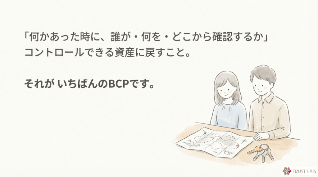 • 将来の引継ぎやBCPも見据えて整理しておきたい