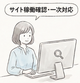 サイトの異常や不具合の兆候を確認し、状況整理と方針提示までを行います。
