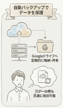 バックアップを取得し、お客様と共有するGoogleドライブへ格納します。